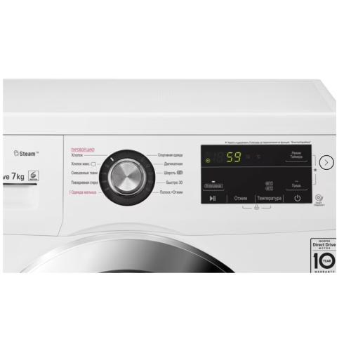 | Список программ | Быстрая/Деликатная/Детские вещи/Ежедневная/Полоскание и отжим/Предварительная/Смешанные ткани/Спортивная одежда/Хлопок/Шерсть |