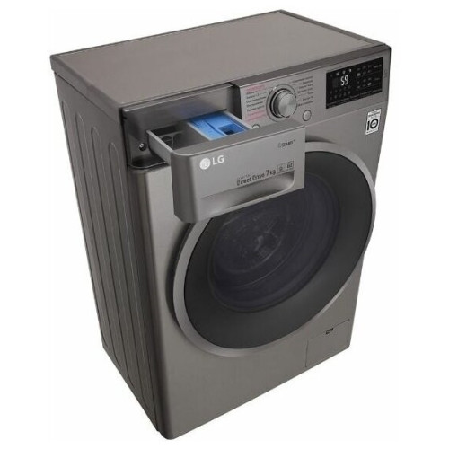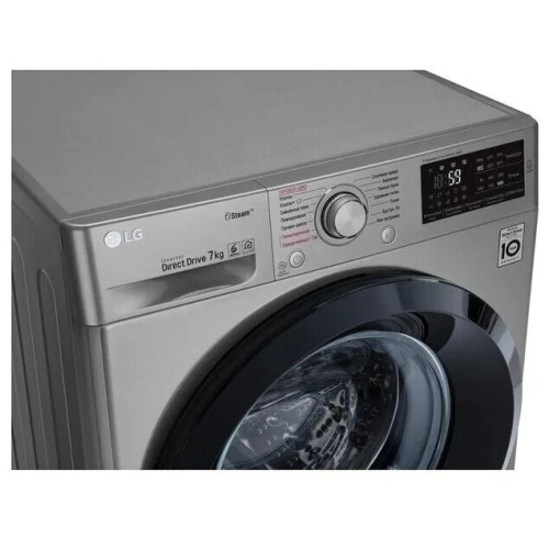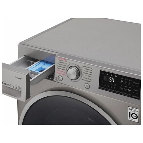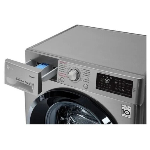 Основные характеристики - Установка: отдельностоящая - Конструкция стиральной машины: узкая - Количество барабанов: 1 - Тип двигателя: инверторный Основной барабан - Тип загрузки: фронтальная - Поверхность барабана: пузырьки - Максимальная загрузка белья: 7 кг - Максимальная скорость отжима: до 1200 об/мин - Класс стирки: A - Класс отжима: B - Уровень шума при стирке: 55 дБ - Уровень шума при отжиме: 74 дБ Управление - Тип управления: электромеханическое - Переключатели: поворотные, сенсорные, кнопочные - Размещение панели управления: под наклоном - Количество программ: 14 - Программы: хлопок, хлопок+, смешанные ткани, повседневная, пуховое одеяло, одежда малыша+пар, гипоаллергенная, бережная, спортивная одежда, быстро 30, тёмные ткани, удаление пятен, тихая, моя программа - Дополнительные программы: предварительная стирка, интенсивная стирка, без складок, полоскание+, добавить бельё, экономия времени - Функция пар: да - Управление c мобильного устройства: да - Поддержка мобильного приложения: LG ThinQ - Умный дом: LG ThinQ Температурные режимы - Регулировка температуры стирки: да - Количество температурных режимов: 6 - Минимальная температура воды: 20 °С - Максимальная температура воды: 95 °С Дисплей - Цифровой дисплей: да - Тип дисплея: LED Таймер - Таймер отсрочки: да - Максимальное время отсрочки стирки: 19 ч Индикация - Звуковой сигнал окончания стирки: да - Индикация времени до конца программы: да - Индикация температуры: да - Индикация скорости отжима: да - Индикация загрузки барабана: да - Индикация блокировки дверцы: да - Индикация ошибок: да - Индикация включения/паузы: да - Индикация выбора дополнительных функций: да - Индикация цикла стирки: да - Индикация времени отложенного старта: да Расход воды - Расход воды за цикл: 56 л Отжим - Регулировка скорости отжима: да - Количество скоростей отжима: 5 - Отмена отжима: да - Автоматический контроль загрузки: да Технологии - Технология NFC: да - Пузырьковая стирка: да - Функция дозагрузки белья: да - Технология 6 Motion: да Защита и безопасность - Защита от детей: да - Защита от протечек: да - Система защиты от протечек: частичная - Блокировка люка во время работы: да - Контроль пенообразования: да - Авторестарт: да Энергопотребление - Класс энергопотребления: A - Энергопотребление за цикл: 1.06 кВт/ч - Напряжение: 220-240 В Особенности конструкции - Направление открывания люка: влево - Диам.