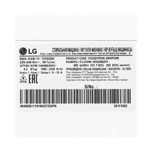 | Дополнительные программы | Самодиагностика/Бесшумная/Очистка барабана |