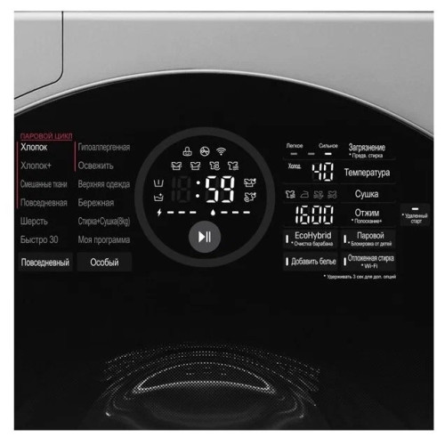 Технология Eco Hybrid Сушка горячим воздухом позволяет значительно экономить потребление воды, а сушка интенсивной циркуляцией воды экономит ваше личное время. Функция пара TrueSteam* В процессе стирки горячий пар, смешиваясь с водой, мягко воздействует на ткань, полностью растворяет остатки моющих средств, удаляет бытовые источники аллергии и обезвреживает бактерии**. Специальный паровой режим «Освежить» позволяет устранить впитавшийся запах и разгладить легкие складки без применения моющих средств и воды.