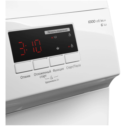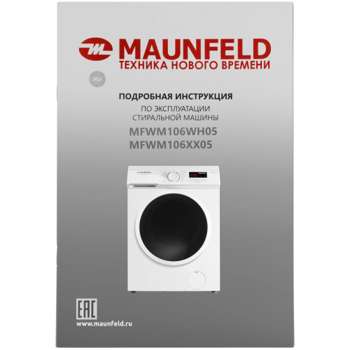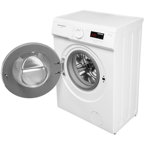Узкая стиральная машина Maunfeld MFWM106WH05 рассчитана на 6 кг белья. В ней установлен мотор стандартного типа. Максимальный уровень шума при стирке — 64 дБ, при отжиме — 79 дБ. Диаметр люка, сделанного из стекла и пластика — 48 см. Тип управления — электронный, есть цифровой дисплей. Доступно 15 программ, в том числе для ухода за джинсами и вещами из хлопка и синтетики. Начало работы переносится с помощью отложенного старта. Предусмотрена блокировка от детей. Потребляемая мощность — 2050 Вт. Класс энергоэффективности — A++. Расход воды за цикл — 45 л. Безопасность обеспечивается частичной защитой от протечек Overflow. Размеры этой модели — 85 х 59,5 х 46.5 см.