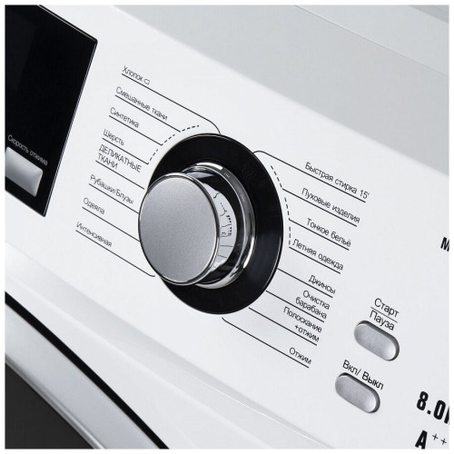 Отдельностоящая стиральная машина Узкая, глубина 52 см. Управление: электронное c LCD дисплеем Количество режимов стирки: 16 ( Хлопок, Смешанные ткани, Синтетика, Быстрая стирка 15, Пуховые изделия, Джинсы, Рубашки/Блузы, Шерсть, Одеяло, Тонкое белье, Летняя одежда, Интенсивная, Деликатные ткани, Полоскание+отжим, Отжим, Очистка барабана) Класс энергопотребления: А+++ Класс эффективности отжима: B Класс эффективности стирки: А Максимальная загрузка белья для стирки, кг: 8 Отсрочка cтарта от 0 до 24 часов Максимальная скорость вращения при отжиме, об/мин: 1000 Диспенсер для жидких моющих средств Материал бака / барабана: экокарбон (стекловолокно) / нержавеющая сталь Электронная система балансировки загрузки Автоматическая блокировка дверцы Диаметр люка, см: 48.6 Угол открытия люка: 135 °, Энергопотребление при стирке, кВт/ч: 0.825 Расход воды на цикл при стирке, л: 73 Мощность подключения, Вт: 1800 Уровень шума при стирке /при отжиме/ при сушке, Дб: 62/72 Особенности: легкая тонировка стекла люка, защита от протечек, защита от детей, пеноподавление Описание программ: Смешанные ткани: стирка одежды одного цвета, но разного по составу ткани. Не рекомендуется стирать белье и одежду различных цветов вместе. Хлопок: режим стирки для сильнозагрязненных тканей, устойчивых к высоким температурам (ткани из льна и хлопка). Шерсть: стирка изделий из шерсти, промаркированных как пригодные к машинной стирке. Будьте внимательны к выбору температуры стирки, согласно маркировке, указанной на изделии. Синтетика: стирка деликатных тканей из шелка, сатина, других синтетических или смешанных тканей. Деликатные ткани: для стирки натурального шелка, вискозы и кружева. Пуховые изделия: режим стирки максимально подходит для стирки пуховиков и другой верхней одежды. Интенсивная: режим стирки сильнозагрязненного белья. Одеяла: режим для тонких, стёганых одеял, покрывал. Быстрая стирка 15’: режим стирки используемый для освежения незагрязнённого белья (майки и т.п.) Рубашки / Блузы: режим стирки, используемый для рубашек и блуз. Тонкое бельё: режим стирки, используемый для стирки нижнего белья с дополнительным полосканием. Ночная стирка: режим стирки рекомендуемый для использования в ночное время суток. Более тихий режим работы стиральный машины, отжим на низких оборотах. Джинсы: режим стирки джинс и джинсовой одежды. Летняя одежда: режим стирки летней одежды (футболки, шорты ид.) Отжим: дополнительный отжим. Полоскание и Отжим: включение дополнительного отжима и полоскания белья.