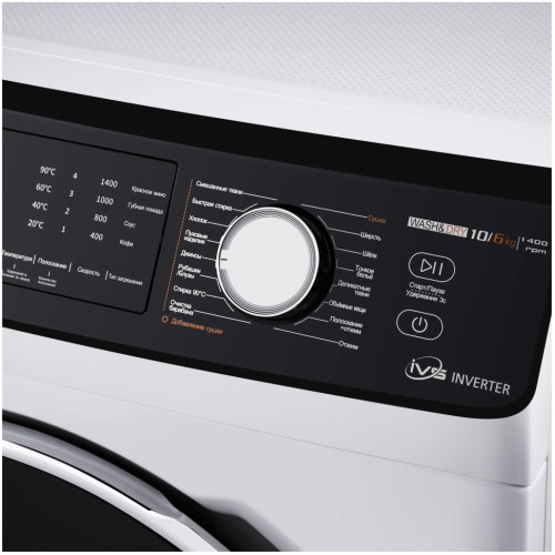 Тип отдельно стоящая фронтальнаяМаксимальная загрузка белья 10 кгСушкаУправление электронноеДисплей цифровой (символьный)Инверторный двигательКласс энергопотребления A++Класс эффективности стирки AКласс эффективности отжима BРасход воды за стирку 80 лСкорость вращения при отжиме до 1400 об/минВыбор скорости отжимаЗащита от протечек водыЗащита от детейКонтроль дисбалансаКонтроль за уровнем пеныПрограмма стирки шерстиПрограмма стирки шелкаПрограммы: стирка деликатных тканей, стирка джинсов, стирка спортивной одежды, стирка пуховых вещей, программа стирки смешанных тканей, быстрая стиркаТаймер отсрочки начала стиркиМатериал бака пластикЗагрузочный люк диаметром 49.2 смУровень шума (стирка / отжим) 54 / 78 дБГабариты (ШxГxВ) 60x58x85 см