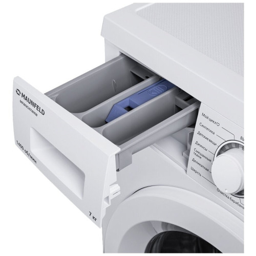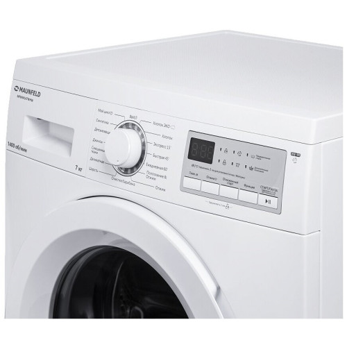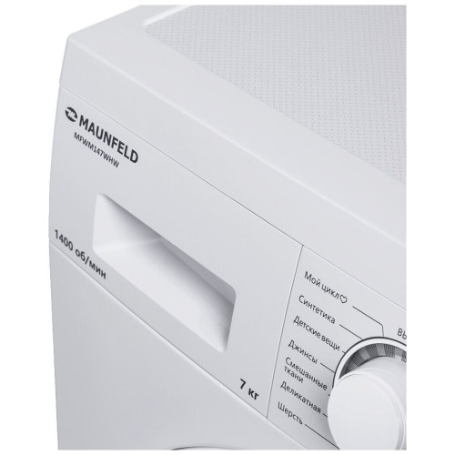 Maunfeld MFWM147WHW — стиральная машина с корпусом белого цвета и фронтальной загрузкой, рассчитанная на 7 кг белья. В ней установлен барабан с внутренней поверхностью, на которой создан рельеф в виде сот. Эта конструктивная особенность позволяет, не уменьшая эффективности, сделать воздействие на вещи максимально аккуратным. Поэтому изделия из деликатных материалов в процессе стирки не повреждаются.