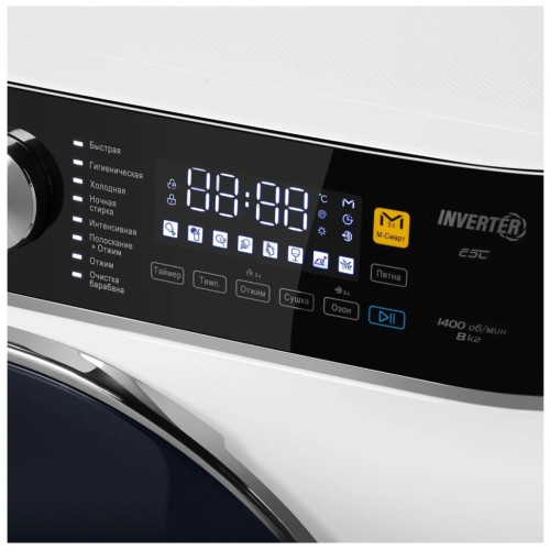 Широкий выбор программ позволяет эффективно и бережно отстирывать самые деликатные ткани.Программа М-Смарт поможет определить вес белья и подобрать оптимальное время и температуру стирки. Функция ""Удаление пятен"" позволяет удалять разного рода пятна, таких как вино, сок, жир, краска и т.д. Машина настраивает среднюю температуру стирки, движение барабана и время замачивания в зависимости от вида загрязнения. Electronic Stability Controller — система электронной стабилизации. Встроенный сенсор отслеживает сотрясения барабана, устраняет дисбаланс и уменьшает вибрацию.Режим быстрой стирки подойдет для слегка загрязнённых вещей, которые нужно быстро постирать. Особый рисунок на поверхности барабана предотвратит излишнее трение ткани. Каплевидные ячейки, расположенные в шахматном порядке по поверхности барабана, обеспечивают равномерную воздушную подушку, заботясь о волокнах белья. Автобалансировка загрузки равномерно распределяет белье внутри барабана и гарантирует низкий уровень шума при отжиме даже на самых высоких оборотах. Внушительный объём барабана вместительностью до 8 килограмм позволяет отстирать всю необходимую одежду за один цикл со значительной экономией времени и электроэнергии. Двухслойная дверца люка диметром 52 см предотвращает возможность получения ожога от горячего стекла дверцы. Антимикробный уплотнитель двери предотвращает образование плесени и помогает сохранить постиранное белье в чистоте. Всегда ли необходимо стирать вещи так долго? Все ли вещи одинаково загрязнены? Функция изменения времени поможет изменить стандартный режим стирки в зависимости от степени загрязнения ткани. Защита от детей — система безопасности, позволяющая заблокировать панель управления, чтобы ребенок не смог включить стиральную машину. Стиральная машина оповестит вас о завершении процесса стирки звуковым сигналом, который при желании можно отключить. Система контроля пенообразования автоматически добавит к циклу еще одно дополнительное полоскание, если уровень пены в барабане превысит максимально допустимый. Новая конструкция лотка для моющих средств. Вращающийся валик с лопастями обеспечивает лучшее растворение в воде моющих средств. Отдельный отсек для жидкого моющего средства. Стиральная машина оснащена функцией отсрочки старта, чтобы можно было выставить любое удобное время стирки в пределах 24 часов.Максимальная скорость отжима 1400 об/мин. - за несколько минут ваше белье высохнет практически полностью. Ребра-активаторы предотвратят скручивания и смятие тканей — они аккуратно переворачивают вещи во время сушки, не травмируя ткань.