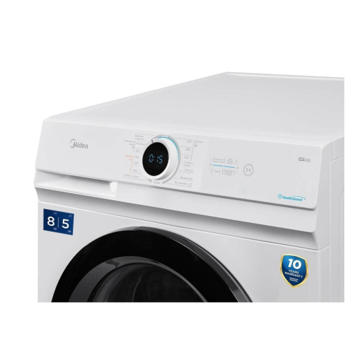 Стиральная машина Midea MF100D80BS/W-RU изготовлена в двух цветах — черном и белом. Питание от электросети с напряжением 220 В. Потребляемая мощность составляет 2000 Вт. Объем барабана — 53,6 л. Модель рассчитана на загрузку до 8 кг сухого белья. Стабильную работу устройства обеспечивает инверторный мотор. Скорость отжима — 1400 об/в минуту. Есть автоматическая сушка (в том числе по таймеру), функция «Стирка с паром» и «Отложенный старт», блокировка от детей. Максимальный расход воды за час — 48 л.