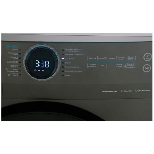 Стиральная машина Midea за цикл стирки потребляет до 0,472 кВт*ч электроэнергии и до 47 л воды. Устройство с фронтальной загрузкой и барабаном объемом 52 л вмещает до 8 кг белья. Можно регулировать скорость отжима вплоть до 1400 об/мин. Используя сенсорные электронные кнопки на передней панели, можно установить программу работы, подходящую для конкретного типа белья, отложить запуск, добавлять вещи во время стирки, обрабатывать их паром. О завершении программы оповещает звуковой сигнал. На дисплее отображаются показатели работы, время, оставшееся до окончания цикла. Опция защиты от детей повышает безопасность эксплуатации.