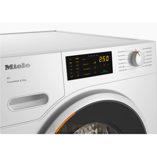 - Технология пара Miele Steam: Функция пара используется в нескольких программах для облегчения глажения (разглаживает складки), уменьшения аллергенов и особенно бережной стирки деликатных тканей, обеспечивая глубокое проникновение моющего средства.