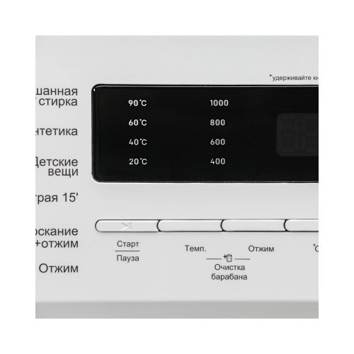 | Индикация | Блокировки дверцы/Блокировки управления/Времени отложенного старта/Времени программы/Количество полосканий/Ошибок/Скорости отжима/Температуры |