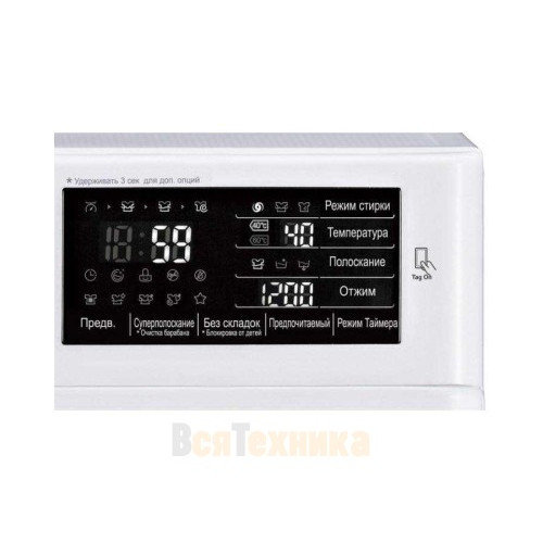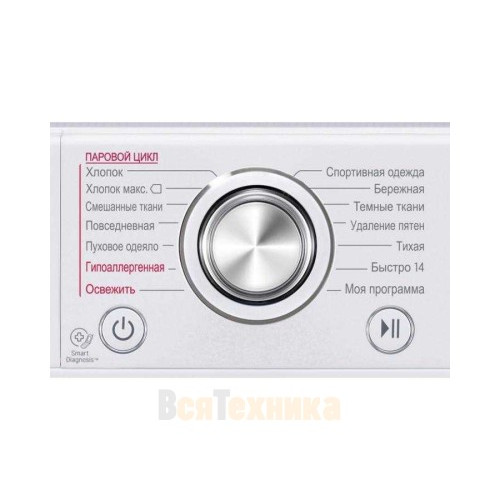- Умная диагностика Smart Diagnosis: Уникальная функция, которая через мобильное приложение LG ThinQ позволяет диагностировать неполадки. Достаточно запустить приложение и поднести телефон к машине — это сэкономит время на вызове мастера для простых консультаций.