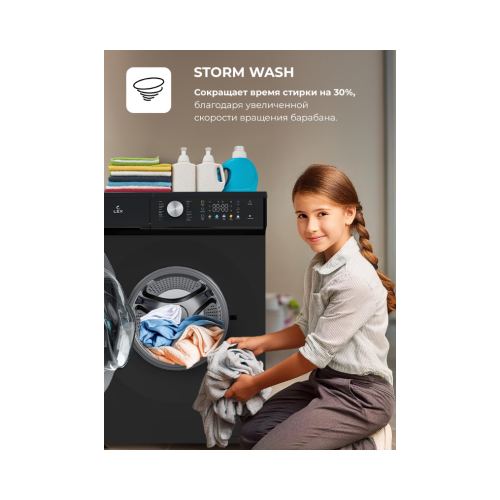 Стиральная машина с инвертором и паром LEX LWM07014BLTHID slim