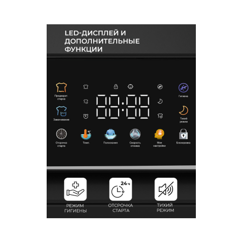 | Индикация | Блокировки/Времени программы/Оборотов/Неисправностей/Рабочего цикла/Температуры |