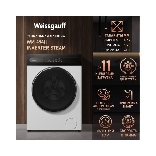 Стиральная машина с инвертором и паром Weissgauff WM 49411 Inverter Steam