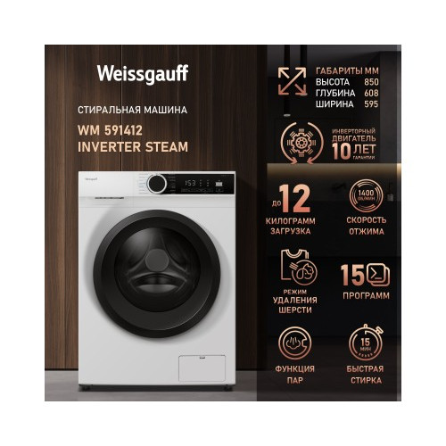Стиральная машина с инвертором и паром Weissgauff WM 591412 Inverter Steam