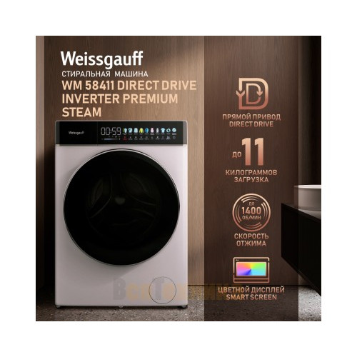 Стиральная машина Weissgauff WM 58411 Direct Drive Inverter Premium Steam: Инновации для безупречной стирки
