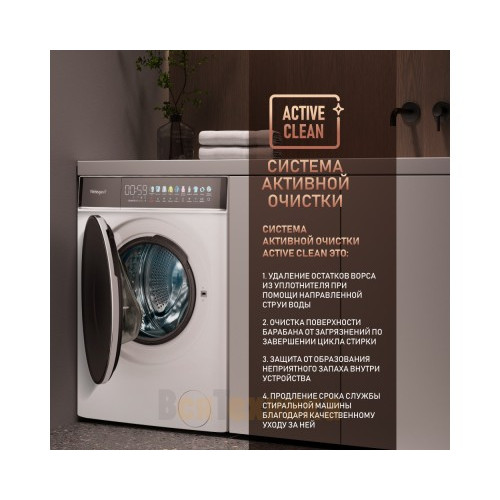 - Высокая энергоэффективность: Прямая передача усилия от мотора к барабану минимизирует потери энергии. В сочетании с инверторным управлением это гарантирует класс энергопотребления А+++ — до 30% экономии электроэнергии по сравнению с обычными моделями.