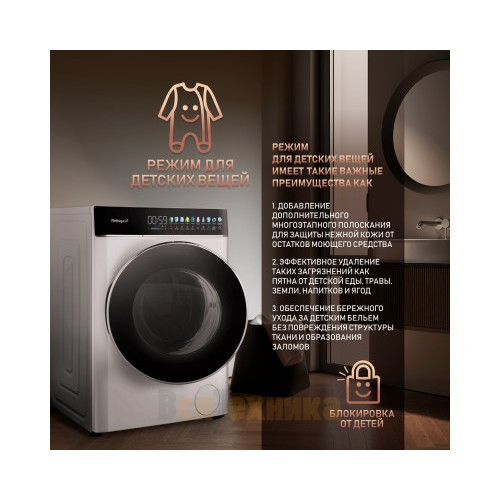 - Для семей с детьми: Функция пара и гипоаллергенные циклы обеспечат идеальную чистоту и безопасность детских вещей.