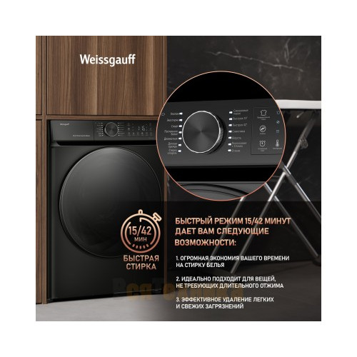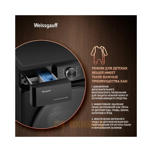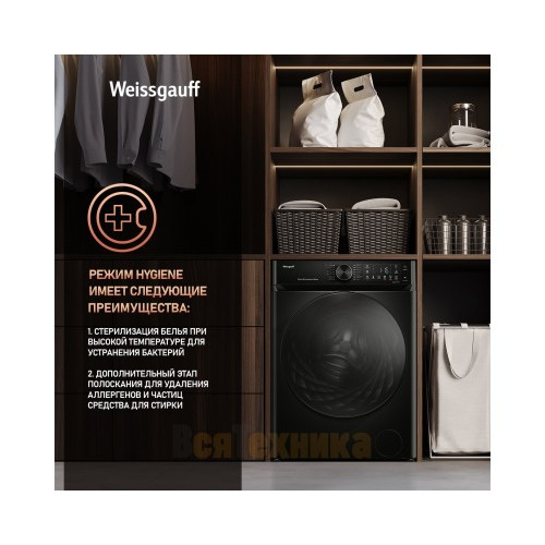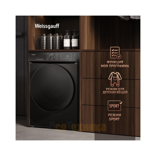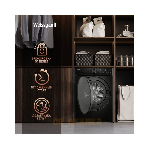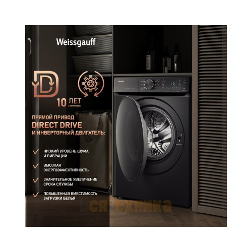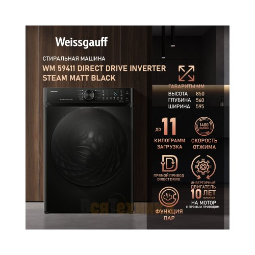 Стиральная машина Weissgauff WM 59411 Direct Drive Inverter Steam Matt Black по цене 46 990 рублей — это разумное вложение в комфорт, чистоту и экономию. Она сочетает в себе самые востребованные технологии на рынке, предлагая профессиональный уход за бельем в вашем доме. Позаботьтесь о качестве стирки уже сегодня.