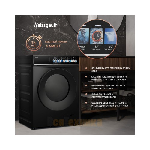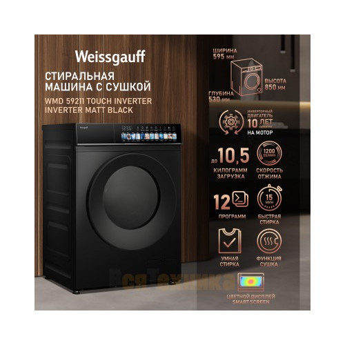 Стиральная машина с сушкой и инвертором Weissgauff WMD 59211 Touch Inverter Matt Black