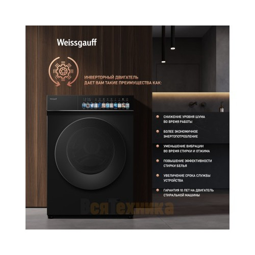 Стирально-сушильная машина Weissgauff WMD 59211 Touch Inverter Matt Black — это разумный выбор для тех, кто хочет вывести бытовой комфорт на новый уровень. Это не просто техника, а полноценный помощник, который берет на себя одну из самых рутинных домашних задач, даря вам свободу и больше моментов для действительно важных дел.