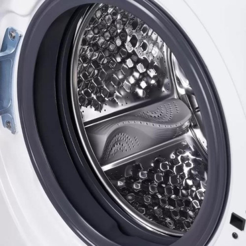 - Тихая работа: Современный инверторный двигатель обеспечивает низкий уровень шума, позволяя запускать стирку в любое время суток.