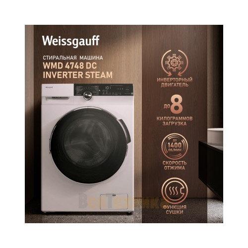 Стиральная машина с сушкой, инвертором и паром Weissgauff WMD 4748 DC Inverter Steam