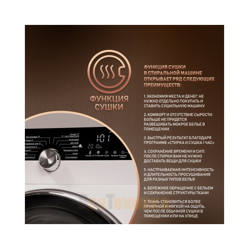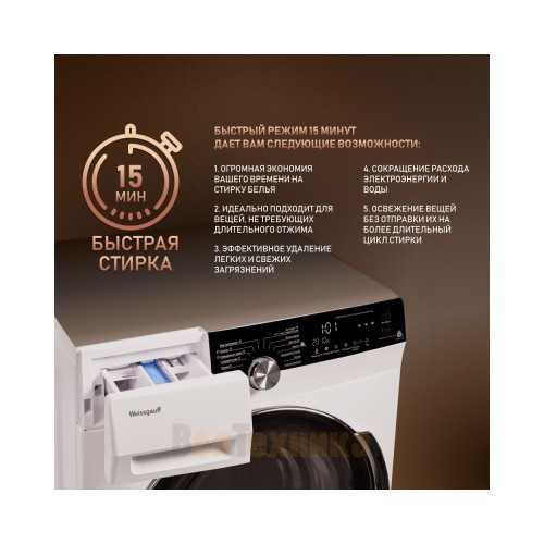 - Полный цикл «Постирал-Высушил-Надел»: Больше не нужно зависеть от погоды или занимать балкон. Получайте полностью готовое к носке белье за одну загрузку.