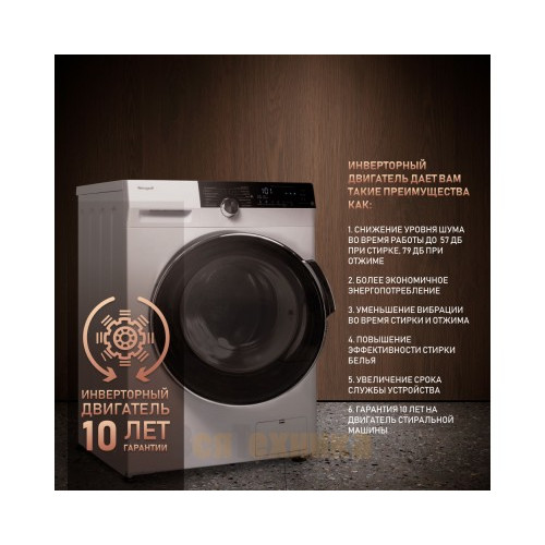 - Инверторный мотор Direct Drive: Высокая энергоэффективность (класс A+++), исключительная надежность и минимальный уровень шума (до 52 дБ при стирке). Мотор напрямую соединен с барабаном, что снижает вибрацию и увеличивает срок службы.