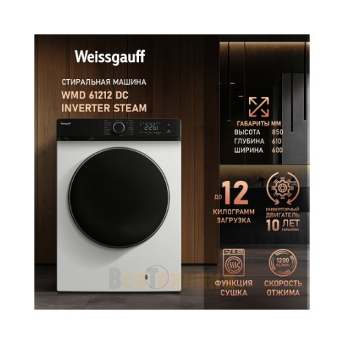 Стиральная машина с сушкой, инвертором и паром Weissgauff WMD 61212 DC Inverter Steam
