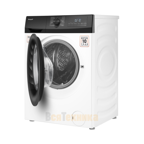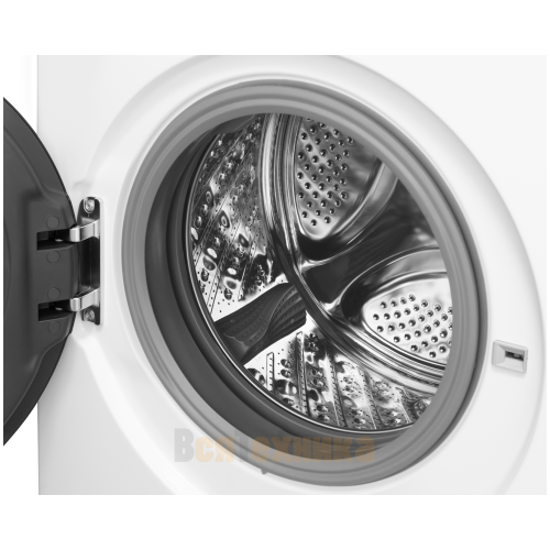 Сердце машины — современный инверторный двигатель, расположенный непосредственно на барабане. Это решение обеспечивает: