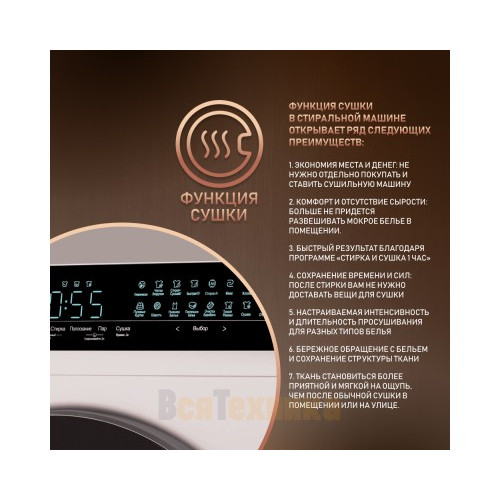 Стирально-сушильная машина Weissgauff WMD 788 Touch Inverter Steam: Все в одном