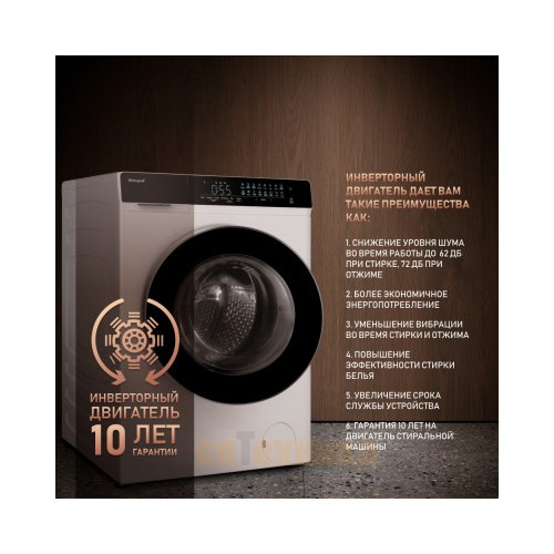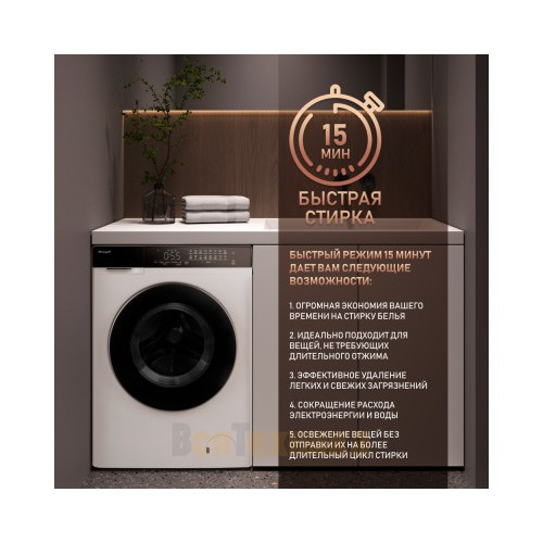 - Для тех, кто ценит тишину: Инверторный мотор делает работу машины практически неслышной, что важно для открытых планировок и стирки в ночное время.