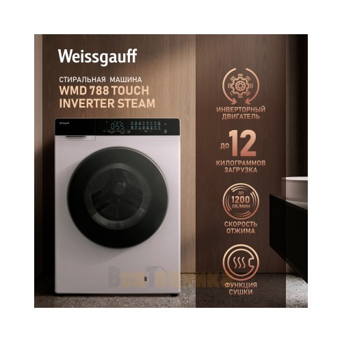 Стирально-сушильная машина Weissgauff WMD 788 Touch Inverter Steam — это разумное вложение в комфорт и быт вашей семьи. Она освобождает вас от рутины, предлагая передовые технологии по доступной цене. Сочетание инверторного мотора, умной сушки, целебной силы пара и стильного сенсорного управления делает эту модель одним из лучших предложений на рынке в сегменте «все-в-одном». Покупая эту машину за 46 990 рублей, вы получаете не просто технику, а полноценного помощника для безупречной чистоты и уюта в доме.
