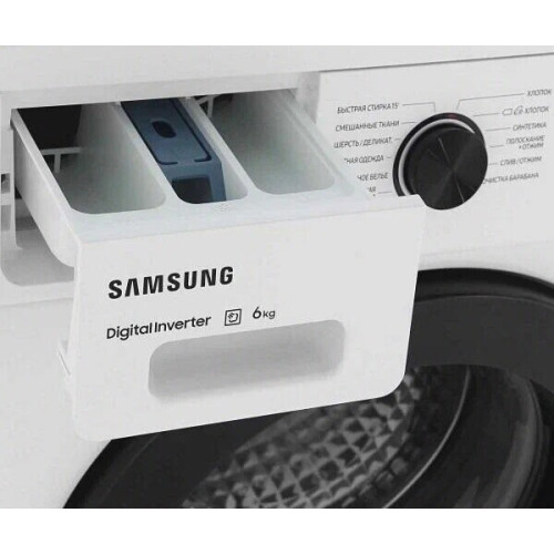 Узкая стиральная машина Samsung за один цикл стирки расходует 36 л воды при максимальной загрузке барабана 6 кг. Конфигурацией устройства предусмотрено множество программ стирки, выбор которых зависит от типа ткани и продолжительности цикла. Максимальная скорость отжима составляет 1000 об/мин. Количество оборотов можно регулировать. На корпусе расположена электронная панель управления, светодиодный дисплей с индикаторами этапов программы, заданного режима работы и времени до его окончания. Данная модель дополнена встроенным таймером отложенного старта и звуковым сигналом. Безопасная эксплуатация обеспечена функцией защиты от детей, защиты от протечек и контроля пенообразования.