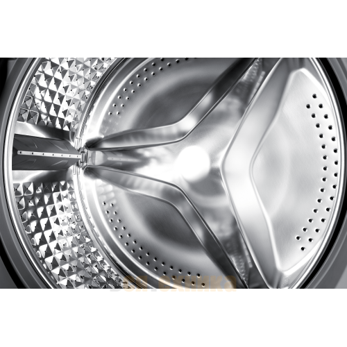 - Барабан Diamond Drum: Специальная поверхность с рельефными ромбовидными выемками создает защитную водяную пленку, которая минимизирует трение и повреждение волокон, продлевая жизнь вашей одежде.