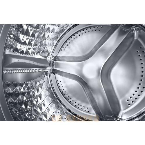 - Большой люк Diamond: Диаметр загрузочного люка увеличен, а его поверхность имеет особую рельефную структуру, которая предотвращает зацепление и повреждение ткани. Загружать и вынимать объемные вещи (пуховики, одеяла) стало проще.