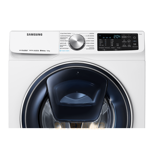 - Технология EcoBubble: Инновация от Samsung. Специальный генератор создает активные пузырьки воздуха, которые проникают в ткань еще до начала основной стирки. Моющее средство растворяется эффективнее даже в холодной воде, что обеспечивает безупречную чистоту при бережном отношении к волокнам и значительной экономии энергии на нагрев воды.