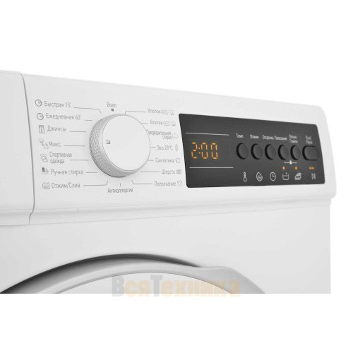 Управление осуществляется с помощью интуитивно понятного электронного блока с дисплеем. Вы сможете легко выбирать программы, устанавливать температуру, скорость отжима и дополнительные опции. Машина информирует о времени до окончания цикла, что делает планирование домашних дел более удобным.