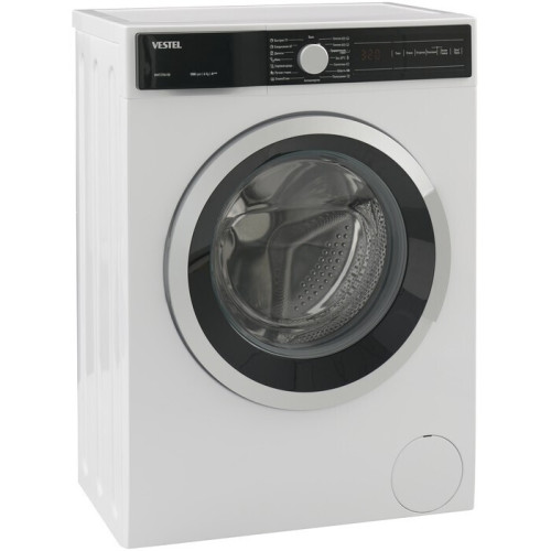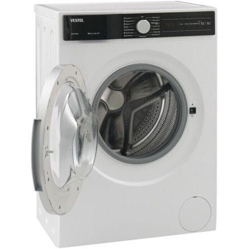 Стиральная машина Vestel WMT2TR6100. Для настройки параметров есть удобная электронная панель с поворотным переключателем. На дисплее отображается текущий цикл, также есть световые индикаторы.