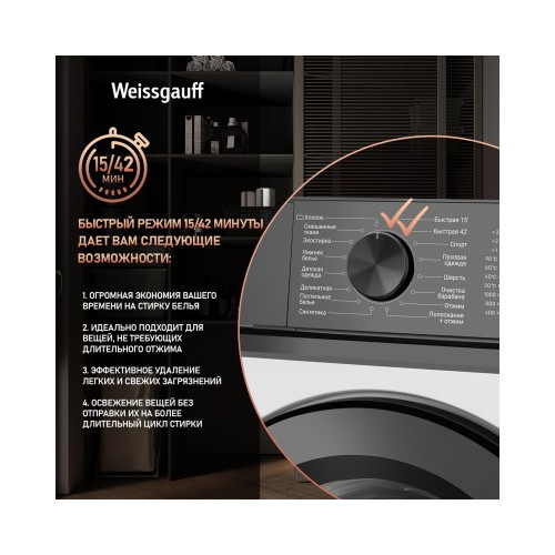 | Дополнительные программы | Быстрая 15’/Быстрая 42 минуты/Нижнее бельё/Очистка барабана/Постельное бельё |