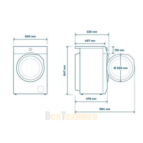 При стандартной глубине в 43 см (что меньше, чем у многих аналогов) и фронтальной загрузке, машина не требует много места. Она станет спасением для студий, компактных ванных комнат и кухонь, где на счету каждый сантиметр, но при этом нет возможности или желания отказываться от полноценной сушки.