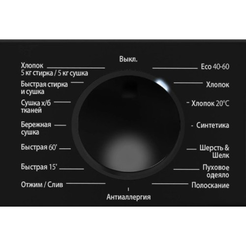 Вместительный барабан на 8 кг для стирки и 5 кг для сушки позволяет за один раз обработать большое количество белья, включая объемные вещи (пуховик, одеяло). Управление интуитивно понятное благодаря русскоязычному LCD-дисплею и электронному переключателю.