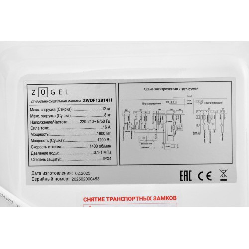 Стирально-сушильная машина ZUGEL ZWDF128141I Inverter Steam