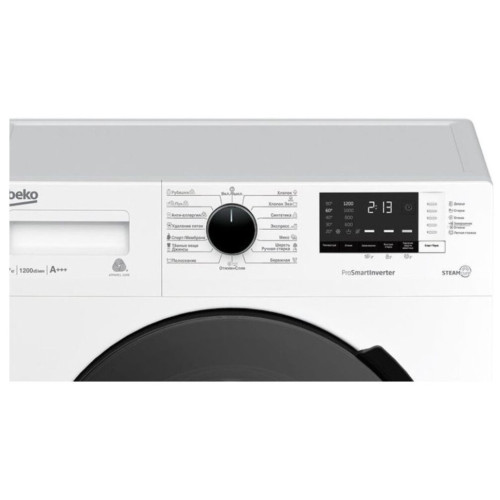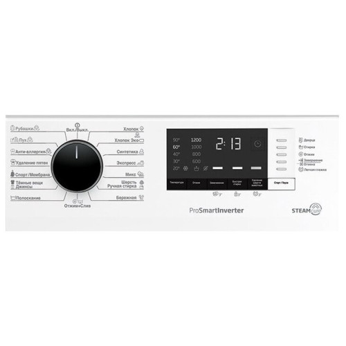 Белая стиральная машина с загрузкой барабана 7 кг и 15 программами для разных типов ткани. Дополнительные режимы стирки позволяют добавлять замачивание и полоскание и легко удалять шерсть животных с вашей одежды. Стиральная машина оснащена инверторным мотором ProSmart, который работает тихо и экономично потребляет электричество, технологией обработки паром SteamCure, электронным контролем дисбаланса и контролем пенообразования.
