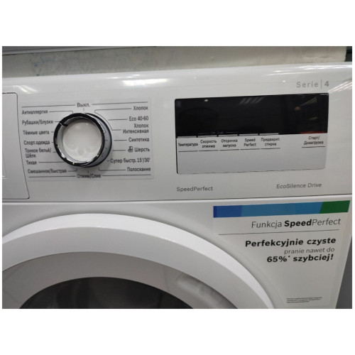 Основные характеристики Максимальная загрузка белья, кг 7 Макс. скорость отжима 1200 Тип двигателя инверторный Общее количество программ, шт 15 Страна сборки Польша Категория Стиральные машины с фронтальной загрузкой Производитель Bosch Серия модели Serie 4 Общая информация Цвет корпуса белый Цвет дверцы люка белый Тип установки Отдельностоящая Тип управления электронное Материал барабана нержавеющая сталь Количество барабанов, шт 1 Тип загрузки фронтальная Расход воды за цикл, л 45 Дисплей да Программы Общее количество программ, шт 15 Программа