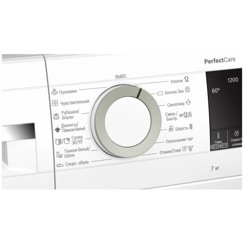 Bosch Serie | 4 PerfectCare wha122xeoe – узкая стиральная машина с загрузкой 7 кг, которая оптимально подходит для размещения в ванной комнате или на небольшой кухне. Благодаря особой конструкции PerfectFit прибор можно ставить вплотную к стене, не оставляя ни единого зазора и экономя тем самым драгоценное пространство. Устройство оснащено специальным барабаном SoftCare Drum. Его бесшовная поверхность бережно воздействует даже на тончайшие изделия из шёлка. Вы самостоятельно разберётесь, как задавать настройки. И в этом вам помогут понятные обозначения вокруг поворотного переключателя режимов и на сенсорных клавишах. Вся важная информация наглядно отображается на крупном дисплее. Бытовой помощник предлагает различные программы для вещей из хлопка, шерсти и синтетики. Кроме того, доступны отдельные режимы для рубашек, джинсов и спортивных костюмов. Если у вас мало времени, то смело выбирайте настройку длительностью всего 15 минут.