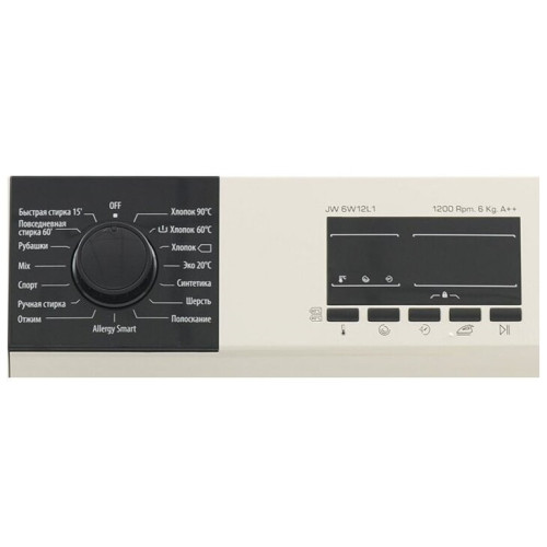 Стиральная машина Jacky's JW 6W12L2 с максимальной загрузкой 6 кг. и скоростью отжима до 1200 оборотов в минуту. Великолепная модель, сочетающая в себе лаконичный английский дизайн и непревзойденное европейское качество. 15 программ в каждой стиральной машине есть 15 программ, которые справятся с любой поставленной задачей и это помимо дополнительных функций. Любое загрязнение не страшно стиральным машинам Jacky’s. Индикатор цикла стирки контроль за процессом стирки и информация о каждом этапе. Легкая глажка если вы не хотите получить заломы на белье, которые сложно отгладить, можно активировать функцию Легкой глажки, тогда отгладить бельё не составит никаких проблем. Удобный люк 47 см всегда удобнее доставать постиранную одежду из большого отверстия. В стиральных машинах Jacky’s все машины с большим загрузочным люком. Выбор температуры возможность выбора температуры стирки исходя из типа белья, тем самым каждая программа может быть идеально настроена под ваши цели Защита от детей вы можете не беспокоиться, что ваши дети смогут перенастроить программы или открыть дверь стиральной машины во время цикла стирки. Удерживая две кнопки можно активировать режим защиты от детей. Выбор скорости отжима возможность выбора скорости отжима исходя из типа белья. Система контроля дисбаланса неравномерная стирка может привести к повреждению барабана машины. Система управления дисбаланса аккуратно перераспределяет содержимое барабана, обеспечивая равномерную стирку и отсутствие повреждений. Allergy Smart профессиональная программа против аллергии, утвержденная самой престижной организацией Англии Allergy UK. Благодаря данной программе для чувствительной кожи, белье промывается наиболее тщательно, что позволяет вывести все остатки моющих средств или загрязнений из белья. Отсрочка старта наш таймер отсрочки позволяет запрограммировать стирку за 23 часа. Корпус Boomerang благодаря специальному дизайну корпуса снижается вибрация во время стирки и отжима. Giant Door вам больше не придется изо всех сил пытаться вытащить белье через дверь вашей стиральной машины. Супер большая дверь значительно упрощает стирку постельных принадлежностей или одеял.