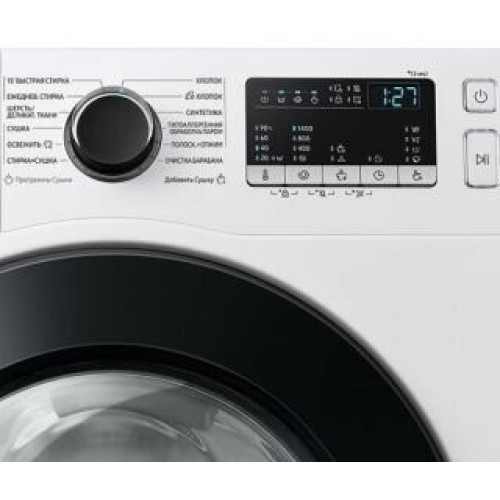 Стиральная машина компании Samsung представляет собой универсальное устройство, совмещающее в себе все необходимые функции: стирку, сушку и использование пара. В режиме стирки модель позволяет загружать максимум 7 кг белья и развивает скорость до 1400 оборотов в минуту при отжиме, а вот сушит за один цикл меньше вещей — до 5 кг. При этом «сердцем» прибора стал инверторный мотор, который более энергоэффективен, меньше шумит и имеет большой рабочий ресурс, поэтому его гарантийный срок составляет 10 лет. Не обошлось и без фирменного генератора EcoBubble, превращающего моющее средство в пузырьки для более деликатной стирки и удаления пятен и загрязнений.
