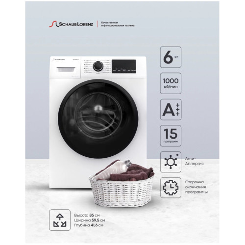 Стиральная машина Schaub Lorenz SLW SW6411 S особенностью которой является наличие стирки с паром, а также стирка при 95°C Вместимость загрузки 6 кг, позволит единовременно стирать большое количество белья, без потери качества стирки. Класс энергоэффективности А+++ это максимальная экономия расхода электроэнергии, без потери производительности. Глубина 46 см благодаря компактным размерам с легкостью впишется в интерьер любой современной квартиры. Интеллектуальная система контроля неисправностей, защита от дисбаланса и излишней пены мгновенное оповестит Вас о возникшей проблеме. Благодаря особому рельефу специальный дизайн корпуса NON-VIBRATION DESIGN снижает вибрации во время стирки и отжима. Покрытие барабана Snow Drum улучшает процесс стирки и отжима, что позволяет сократить износ одежды. Для удаления аллергенов и остатков порошка и моющих средств в данной модели предусмотрены два режима стирки с паром: Allergy Care С помощью пара высокой температуры данная программа удаляет из ткани аллергены, такие как пыльца, бактерии, пылевые клещи. Детская одежда с паром С помощью дополнительного цикла полоскания, а также пара высокой температуры программа удаляет остатки порошка и моющих средств из ткани. Поддержание гигиенической чистоты барабана, благодаря функции очистки при температуре 95 градусов. Удаление загрязнений, бактерий, что особенно актуально при многократных стирках на низких температурах. *Программа не предназначена для стирки белья Блокировка от детей Функция предназначена для всех кнопок во избежание случайного изменения заданной программы стирки детьми. Режим без звука Отключение звуковых сигналов на протяжении всего цикла стирки, удобное решение при стирке в ночное время. Отсрочка старта Возможность отложить запуск стирки на удобное время в диапазоне от 1 до 24 часов.