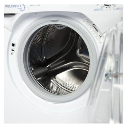 Стиральная машина Candy AQUA 1D1035-07 относится к компактным моделям. Габариты позволяют установить её под раковину или столешницу. Всего имеется 16 программ и несколько дополнительных возможностей. Вместимость 3,5 кг, для холостяка или семейной пары достаточный объём.